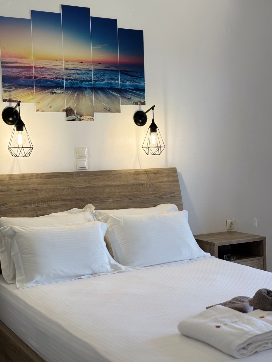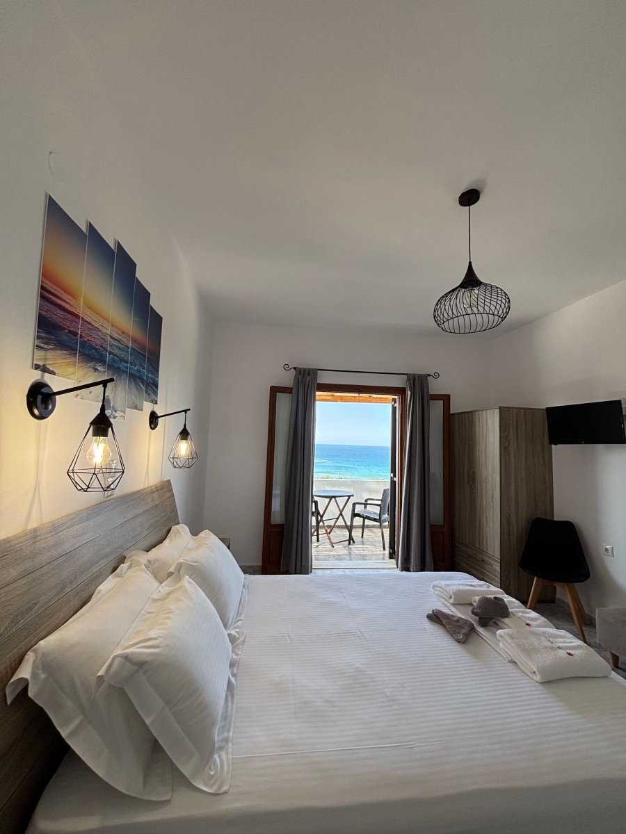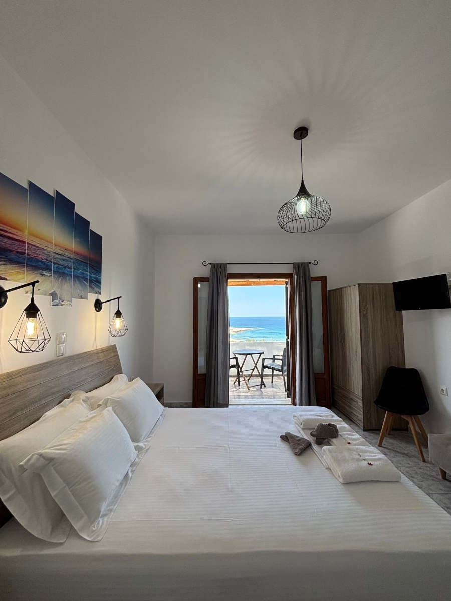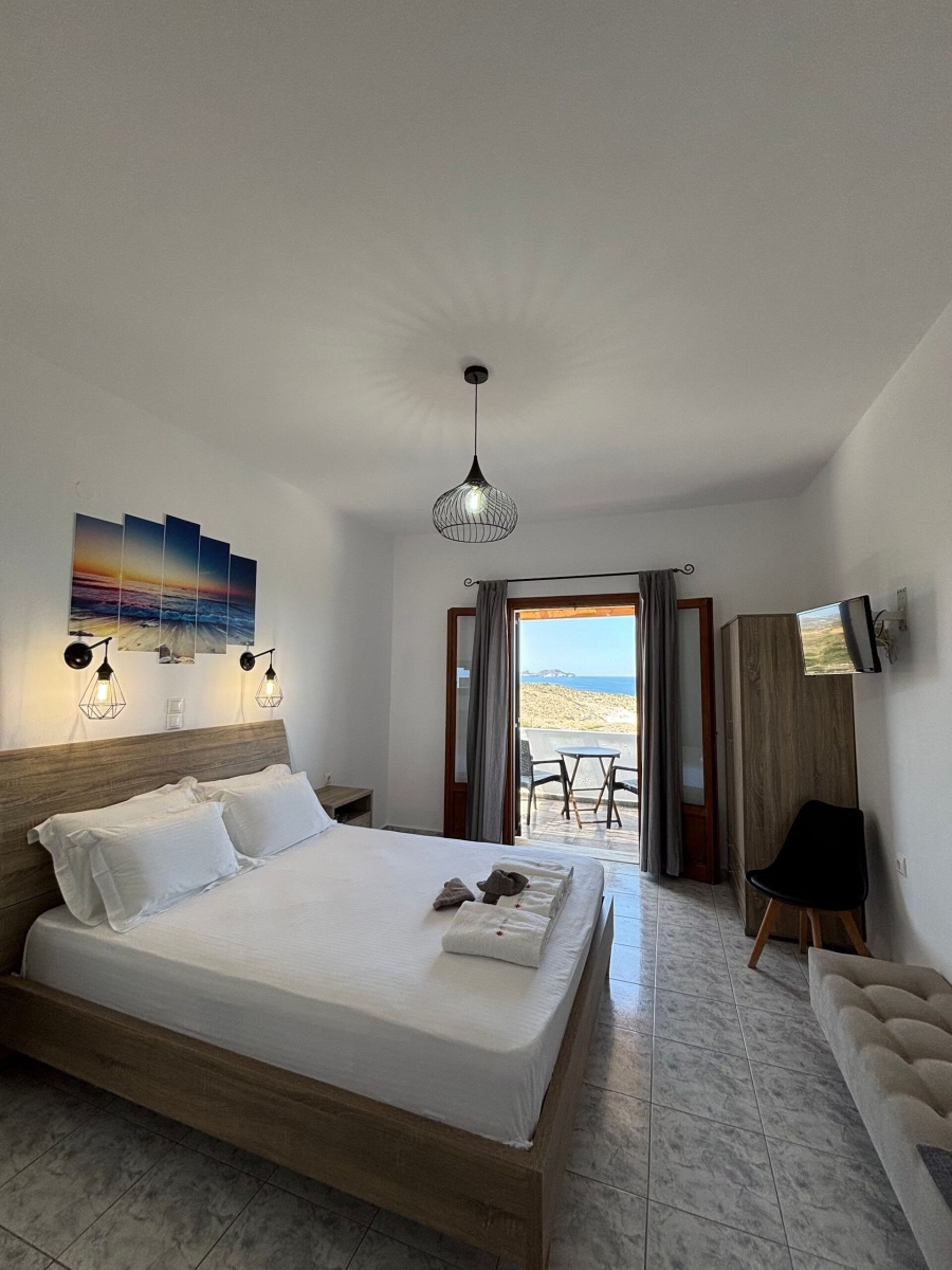 Situated 200 metres from 2 beaches, this air-conditioned room offers free Wi-Fi and a spacious balcony overlooking the Aegean Sea. Includes a TV and fridge.