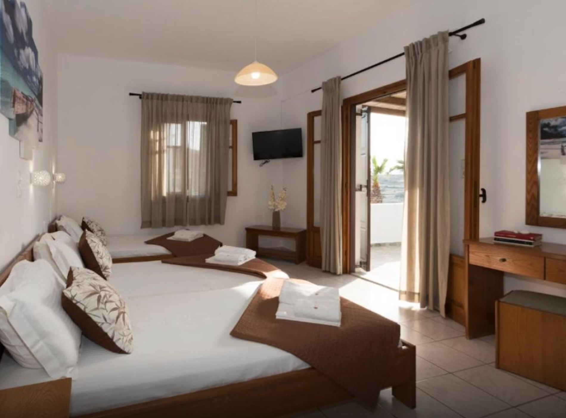 Situated 200 metres from 2 beaches, this air-conditioned room offers free Wi-Fi and a spacious balcony overlooking the Aegean Sea. Includes a TV and fridge.